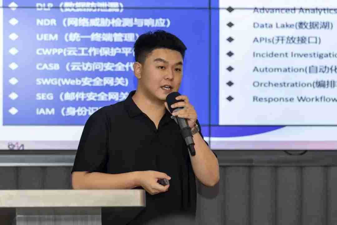 最后,,山石网科售前工程师郑翔天就以XDR云网边端构建全域融合的安全运营新防线主题进行了分享。。。他深入剖析了当前网络安全形势下,,企业面临的挑战和需求,,详细介绍了山石网科XDR解决方案的核心优势,,,包括多数据源管理、、多视角安全事件呈现、、、以及自动化协同响应等,,为与会者展示了山石网科在安全领域的创新能力和专业服务。。